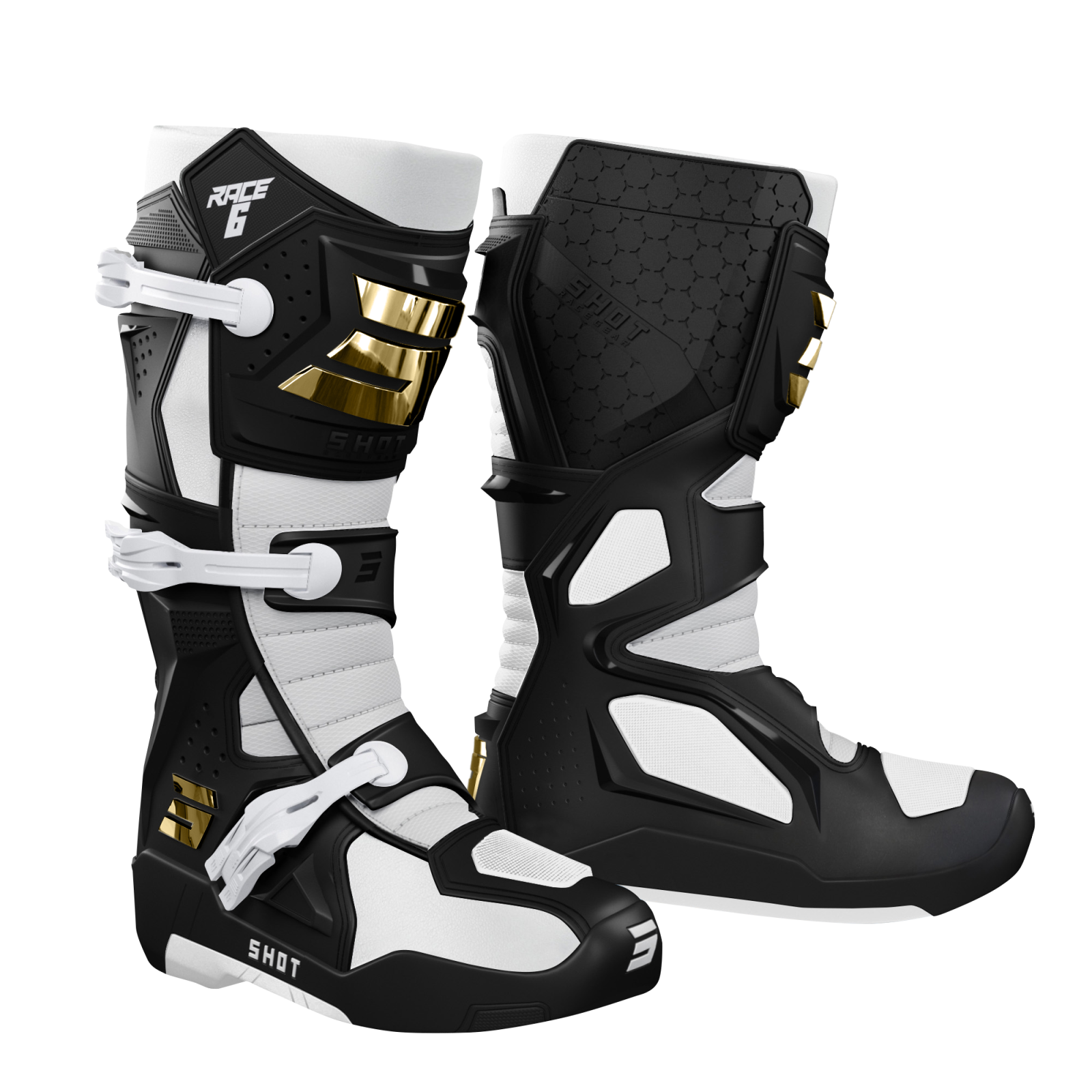 Škornji Shot Race 6 blk/wht/gold